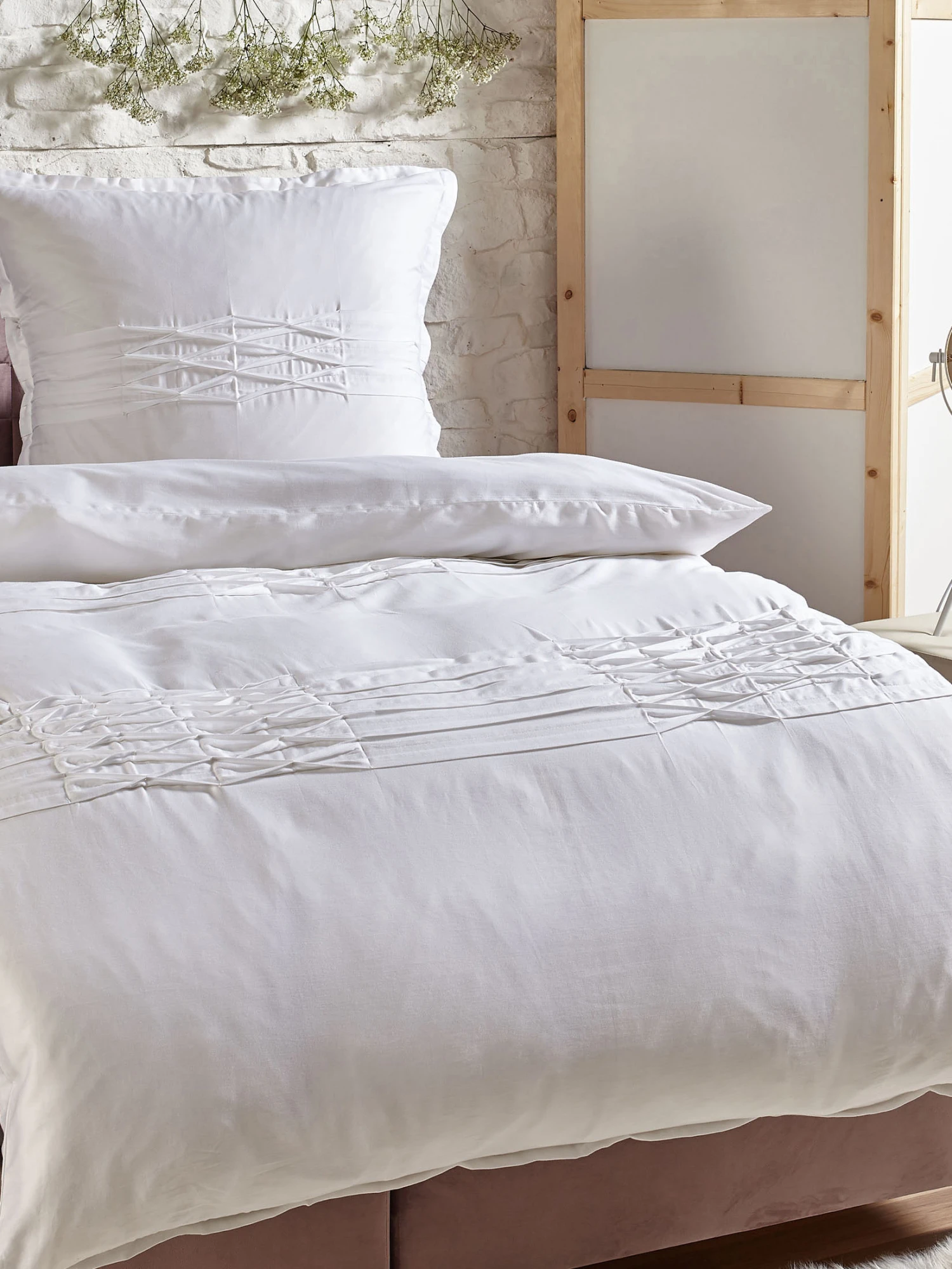 Zarte Dekore beflügeln die Gedanken, während der feine Satinstoff die Haut umschmeichelt. Der Stoff ist angenehm glatt, kühlt im Sommer und wärmt im Winter. Mit Qualitäts-Reißverschluss, 100 % Baumwoll-Satin. Waschbar bis 60 °C. Oeko-Tex Standard 100.