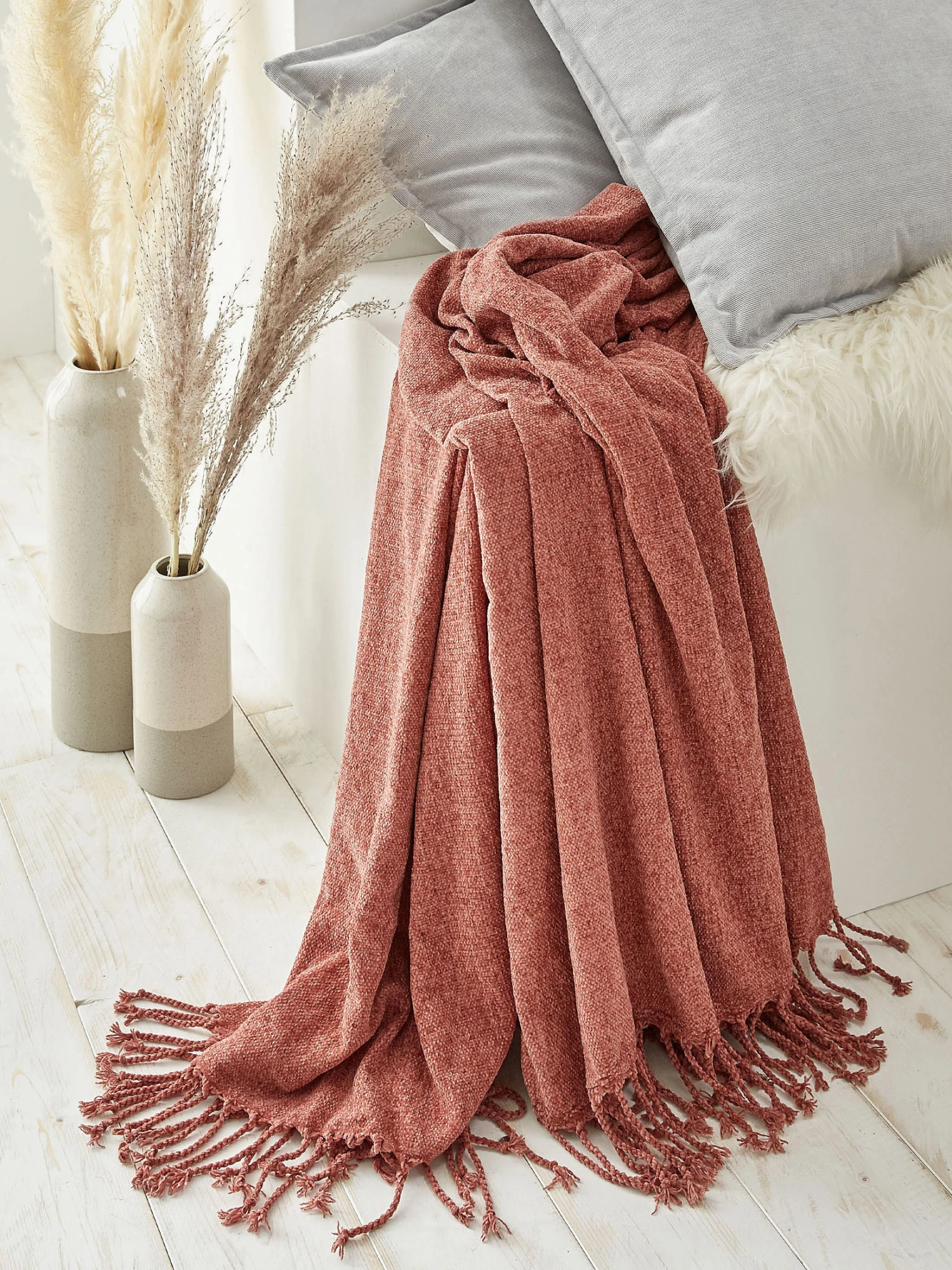 Ein gutes Buch, eine Tasse Tee und die Decke Mirasol. Mehr brauch es nicht um Behaglichkeit zu genießen und zu entspannen. Mirasol ist aus samtweicher Chenille gefertigt. Material: 100 % Polyester (Chenille).
